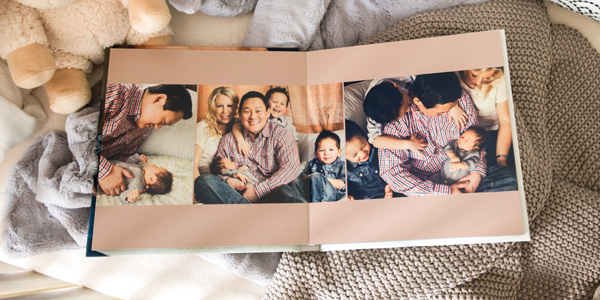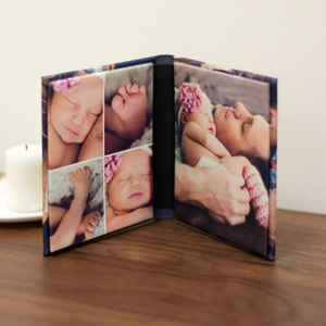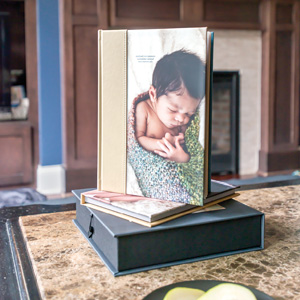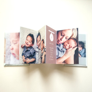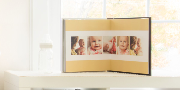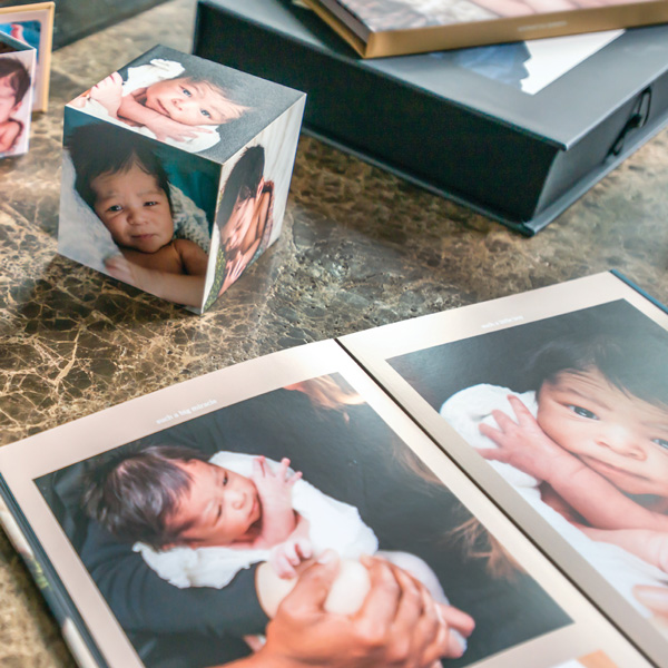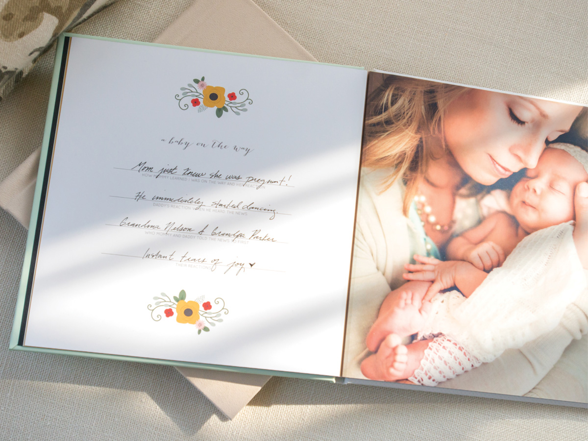 With a book or album, you get it all. Tiny details of baby’s nose, toes, tummy, and hands. Early interactions with mom, dad, siblings and pets. The little expressions that make you melt. Experience these moments page by page, any time you want.