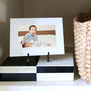 Small photographic mementos of your baby liven up every desktop, tabletop, and shelf. They also make fun personalized gifts for special people in baby’s life, giving them an essential dose of cuteness!