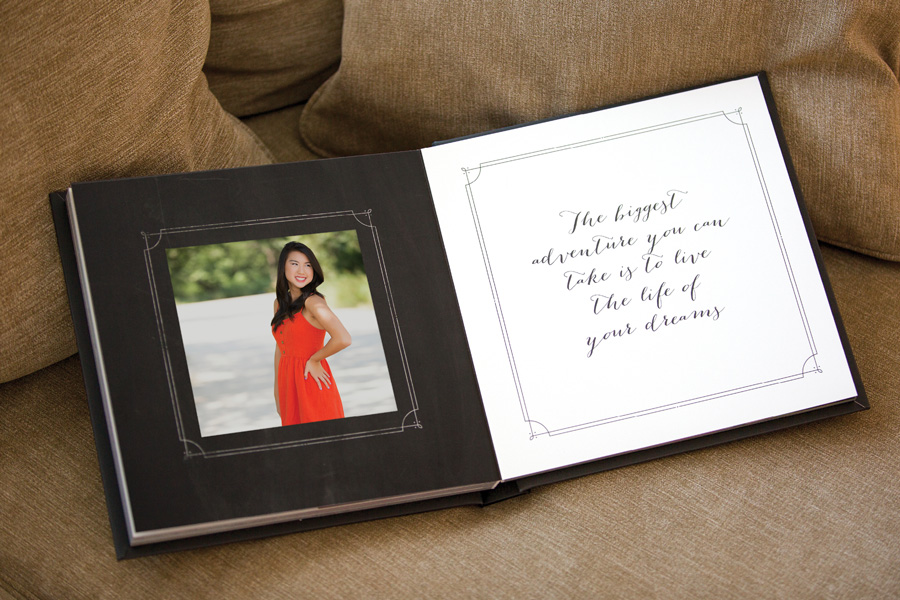 Don’t leave these priceless memories behind. An album turns your senior images into the story of who you are. Everything about you makes your senior photo session unlike anyone else’s. This is one significant chapter in your life. How will the next one unfold? Wherever your future takes you, you’ll always have this time to look back on.