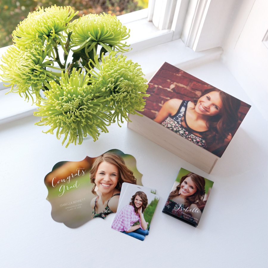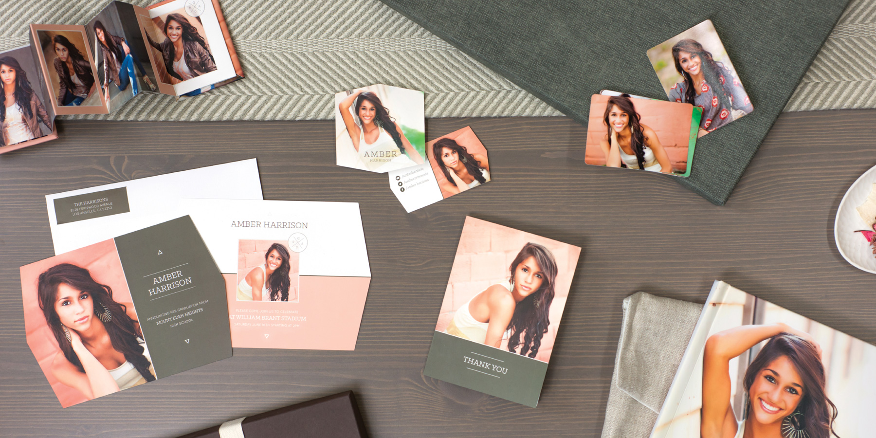Whether you’re celebrating with a graduation party or simply proclaiming your accomplishments, spread the word with customized cards. Send invitations, announcements, and thank you notes that feature your favorite senior images. Add even more personality with stylish card shapes and foil pressed designs. With options as unique as you are, create entire packages customized just for you with matching envelopes, address labels, and more. This is your moment. Express your style and individuality.