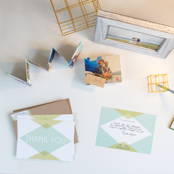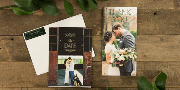 Save the date announcements are a must! There’s no better way to spread the word of your upcoming wedding date than with custom cards featuring your engagement images, tailored specifically to your style. After the wedding, show your guests gratitude with perfectly customized thank you cards. Send friends and family your first holiday cards as a married couple, all wrapped up with stylish envelopes and labels.