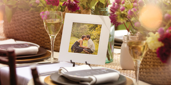 Engagement images bring expressions of your unique personalities into your wedding decor, making unforgettable moments for your guests. Display these images tabletop or mixed in with centerpieces. After the big day, they make themselves perfectly at home with you in your new life together.